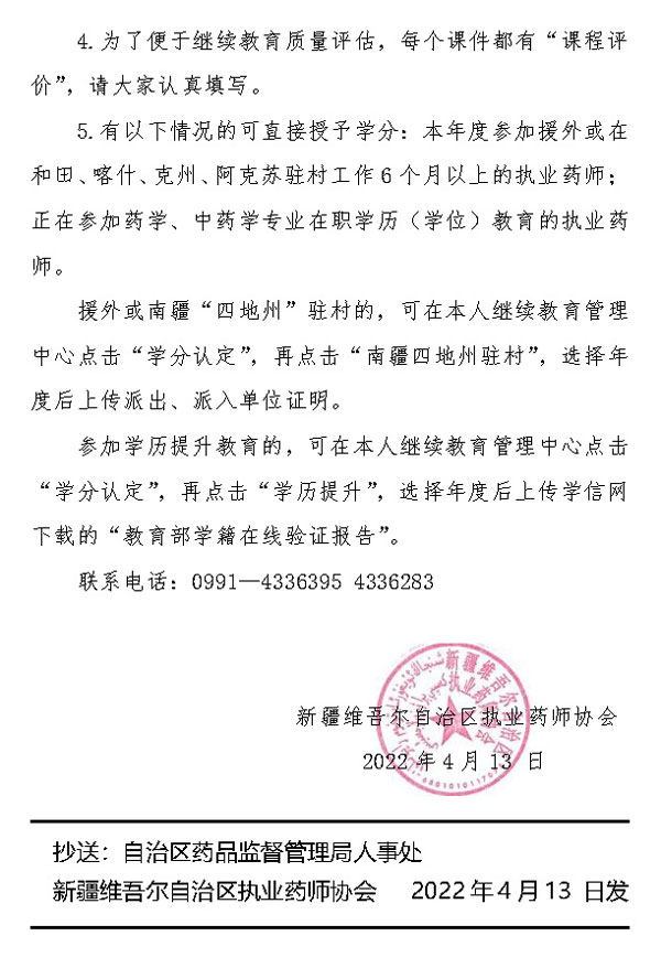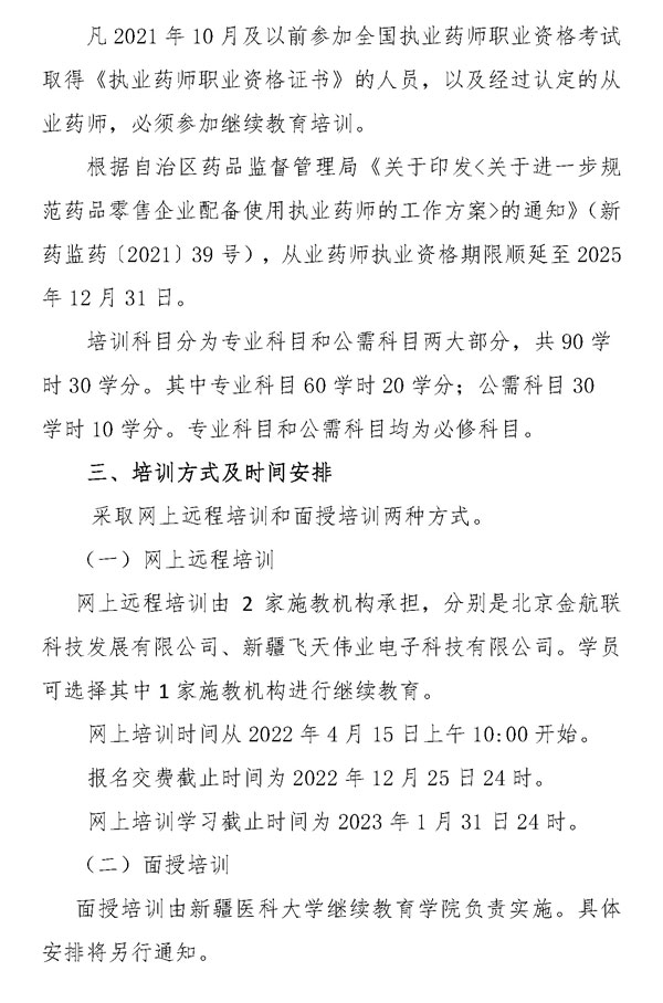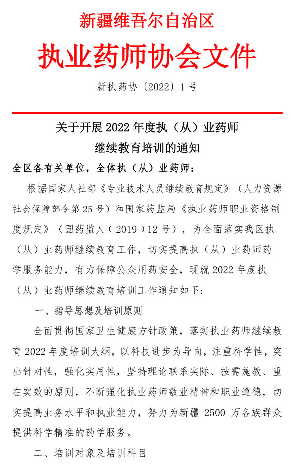 新疆藥師協(xié)會(huì):關(guān)于開展2022年度執(zhí)(從)業(yè)藥師繼續(xù)教育培訓(xùn)的通知