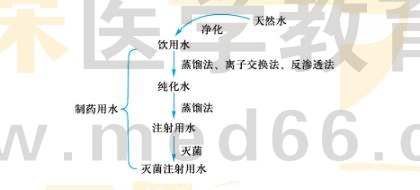 【解答】(1)制藥用水:①純化水:飲用水經(jīng)蒸餾法、離子交換法、反滲透法等制得的制藥用水;②注射用水:純化水經(jīng)蒸餾所得,作為注射劑、滴眼劑等的溶劑或稀釋劑及容器的清洗溶劑;[醫(yī)學(xué)教育網(wǎng)原創(chuàng)]③滅菌注射用水:注射用水滅菌所得,主要用于注射用滅菌粉末的溶劑或注射劑的稀釋劑。