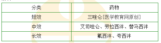 1.【問題】苯二氮?類鎮(zhèn)靜催眠藥根據(jù)作用持續(xù)時(shí)間分類。
