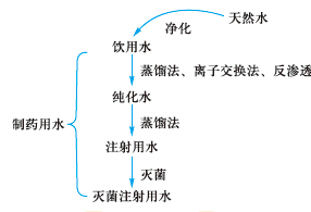 【解答】(1)制藥用水:①純化水:飲用水經(jīng)蒸餾法、離子交換法、反滲透法等制得的制藥用水;②注射用水:純化水經(jīng)蒸餾所得,作為注射劑、滴眼劑等的溶劑或稀釋劑及容器的清洗溶劑;[醫(yī)學(xué)教育網(wǎng)原創(chuàng)]③滅菌注射用水:注射用水滅菌所得,主要用于注射用滅菌粉末的溶劑或注射劑的稀釋劑。