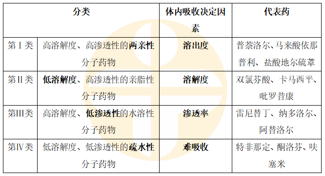 生物藥劑學分類系統(tǒng)根據(jù)藥物溶解度和滲透性的不同組合將藥物分為四類