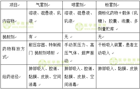 氣霧劑、噴霧劑和粉霧劑比較如下表: