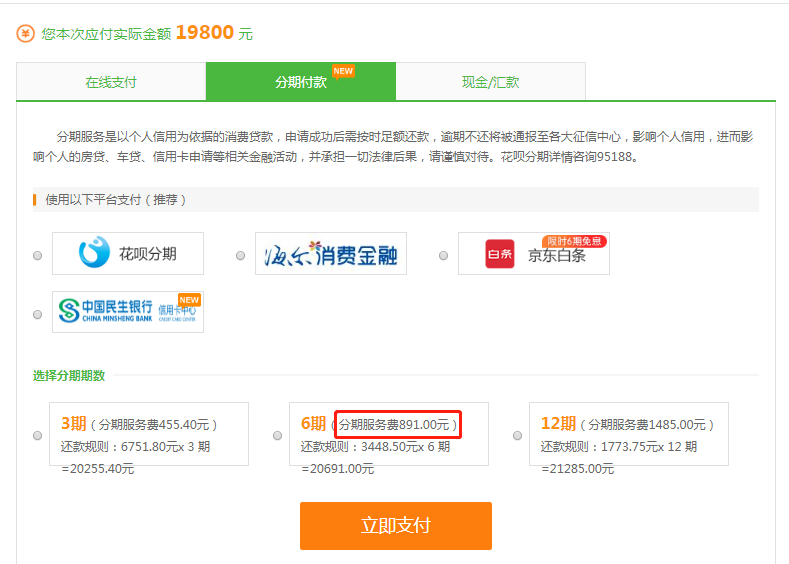 圖一:正常分期付款需要服務(wù)費(fèi)891元!