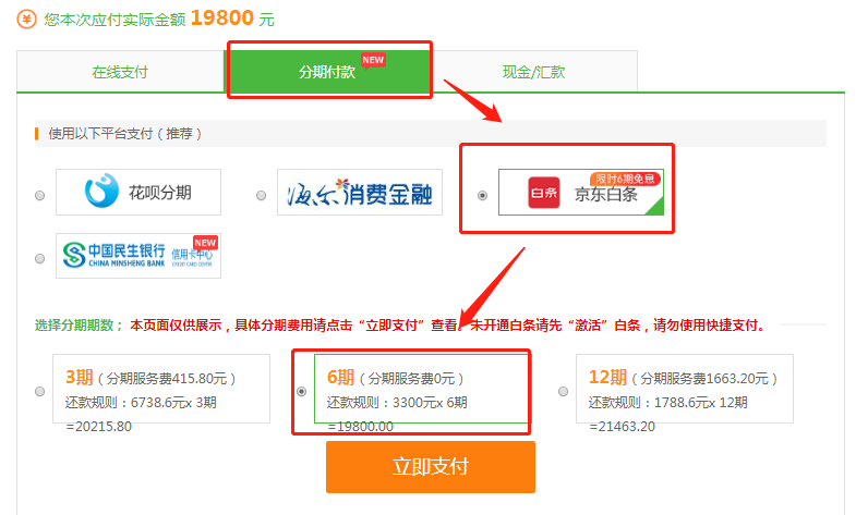 圖二:京東白條6期免息僅付班次費(fèi)用!