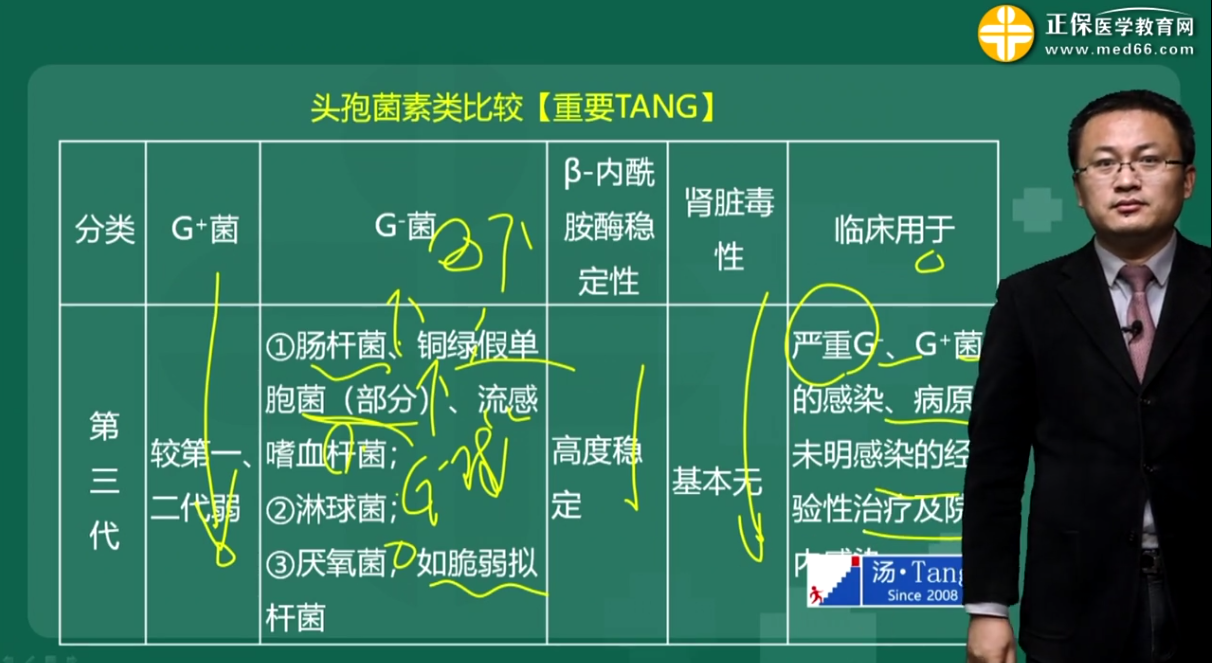 醫(yī)學(xué)教育網(wǎng)湯以恒老師在頭孢素類抗菌藥物的講解中,自己原創(chuàng)一表總結(jié)對比三代頭孢素,方便大家記憶。想了解更多湯以恒講解的頭孢素類抗菌藥物知識,可以點擊進入免費試聽>>