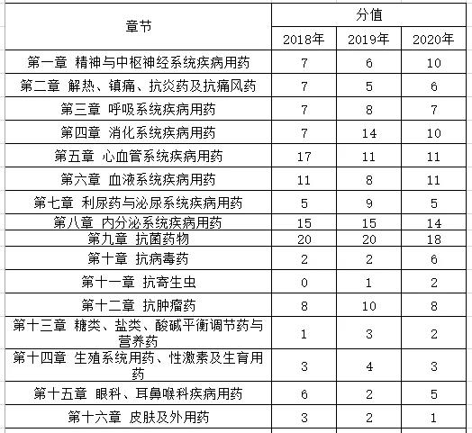 【了解重點(diǎn)】2018-2020年執(zhí)業(yè)藥師7科各章節(jié)分值匯總!