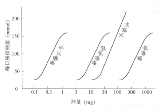效能和效價(jià)強(qiáng)度 | 分析:在一定范圍內(nèi),增加藥物劑量或濃度,所能達(dá)到的最大效應(yīng)是效能。聯(lián)想到人的身高,到了一定年齡,再也不能長(zhǎng)個(gè)兒了。效能就是S形曲線的最高點(diǎn)。比效能,就是比S形曲線的個(gè)頭。 引起等效反應(yīng)(一般采用50%效應(yīng)量)的相對(duì)劑量或濃度,其值越小則強(qiáng)度越大。聯(lián)想到百米跑,同樣的距離,用時(shí)最短的就是最能跑的選手。所以,數(shù)值越小,就越能跑,效價(jià)強(qiáng)度就越大。 對(duì)于上圖,效能:呋塞米>環(huán)戊噻嗪=氫氯噻嗪=氯噻嗪 效價(jià)強(qiáng)度:環(huán)戊噻嗪>氫氯噻嗪>呋塞米>氯噻嗪 |