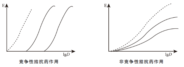 拮抗劑和非競(jìng)爭(zhēng)性拮抗劑 | 分析:競(jìng)爭(zhēng)性拮抗藥:激動(dòng)藥量效曲線平行右移,最大效應(yīng)(個(gè)頭)不變。 非競(jìng)爭(zhēng)性拮抗藥:量效曲線的效應(yīng)降低,個(gè)頭變矮。 注意:有時(shí)候題目中可能也會(huì)提到合用非競(jìng)爭(zhēng)性拮抗藥曲線右移的說(shuō)法,也是對(duì)的,這里右移的意思是達(dá)到同等效應(yīng)劑量增加了,曲線右移了,要區(qū)分競(jìng)爭(zhēng)性拮抗劑的平行右移就可以 |
