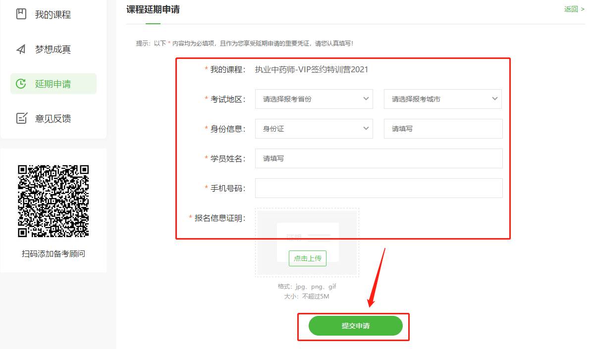 (4)申請(qǐng)完成后,等待客服審核填寫(xiě)信息真實(shí)性。審核通過(guò)后,待到課程到期關(guān)閉后,醫(yī)學(xué)教育網(wǎng)工作人員將為大家進(jìn)行課程延期處理。