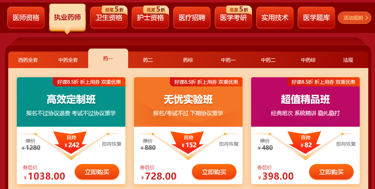 三、執(zhí)業(yè)藥師好課85折,用券更享折上折