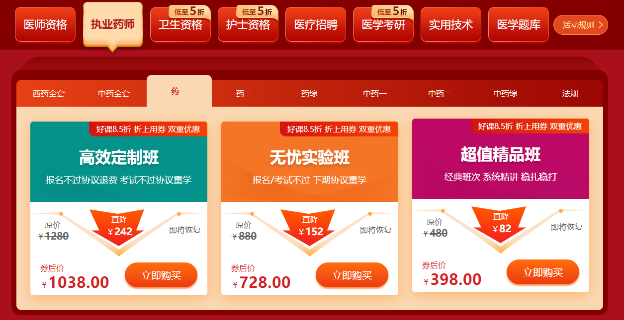 2.超值精品班(除護士、2023年護理/西醫(yī)考研、衛(wèi)生資格單科、醫(yī)師分階段)、無憂實驗班、高效定制班、技能特色班、醫(yī)師筆試集訓營、二試考前急救班、醫(yī)療招聘、護理/西醫(yī)考研、醫(yī)學實用技術(除小兒推拿保健師面授課)、題庫產(chǎn)品活動折扣為8.5折;
