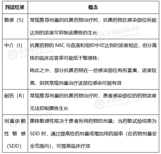 細(xì)菌藥敏試驗分結(jié)果判讀:包括敏感(S)、耐藥(R)、中介(I)、劑量依賴性敏感(SDD)。