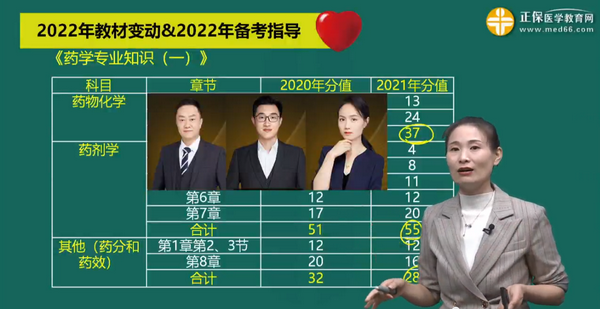 《藥一》2021年與2021年各章節(jié)分值對比如下圖,藥物化學(xué)不能扔,有一些是白拿分的,主要是由程牧、舒國暢、錢韻文老師講解。