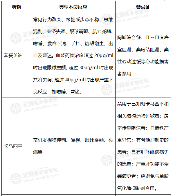 知識(shí)點(diǎn)2:抗癲癇藥典型不良反應(yīng)及禁忌證
