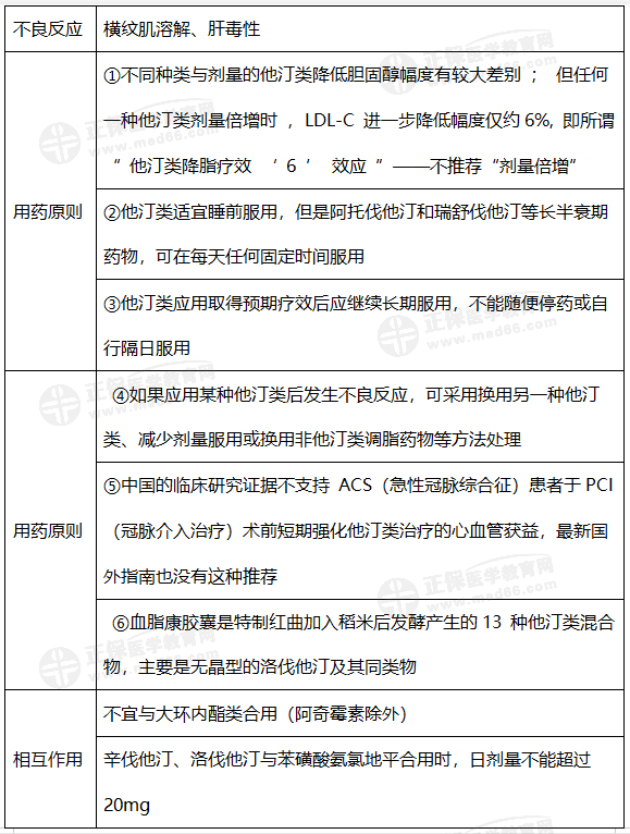知識點2:他汀類藥物的相關(guān)考點