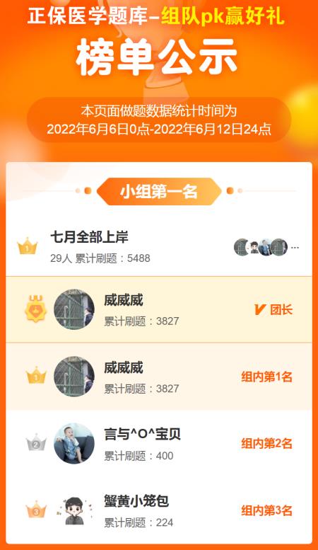 號外!正保醫(yī)學(xué)題庫小程序【組隊pk賽】榜單公布啦!