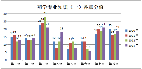 綜上,《藥學(xué)專業(yè)知識一》近幾年考題相對比較簡單,三大塊各部分分值整體沒有很大變化,只是每年有些微調(diào),藥劑學(xué)部分55分左右,藥物化學(xué)部分37分左右,藥分和藥效學(xué)部分28分左右。