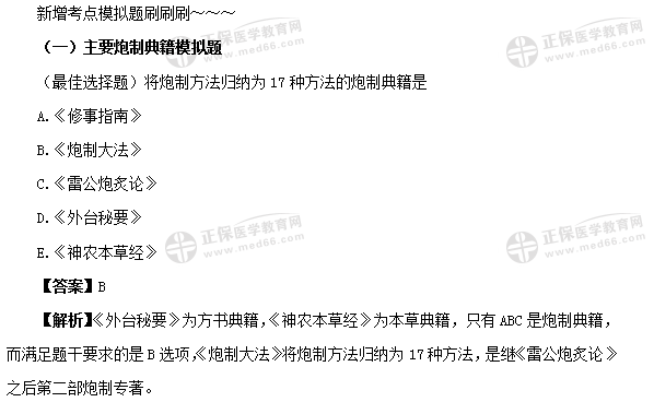 2020年執(zhí)業(yè)藥師考試教材變動(dòng)是近5年最大的一次,各科目考試教材變動(dòng)都非常大,醫(yī)學(xué)教育網(wǎng)整理了《中藥學(xué)綜合知識(shí)與技能》新增內(nèi)容模擬題!以下是模擬題的整理,有習(xí)題,有答案解析,考生請(qǐng)務(wù)必收藏好!以方便后續(xù)備考時(shí)使用!