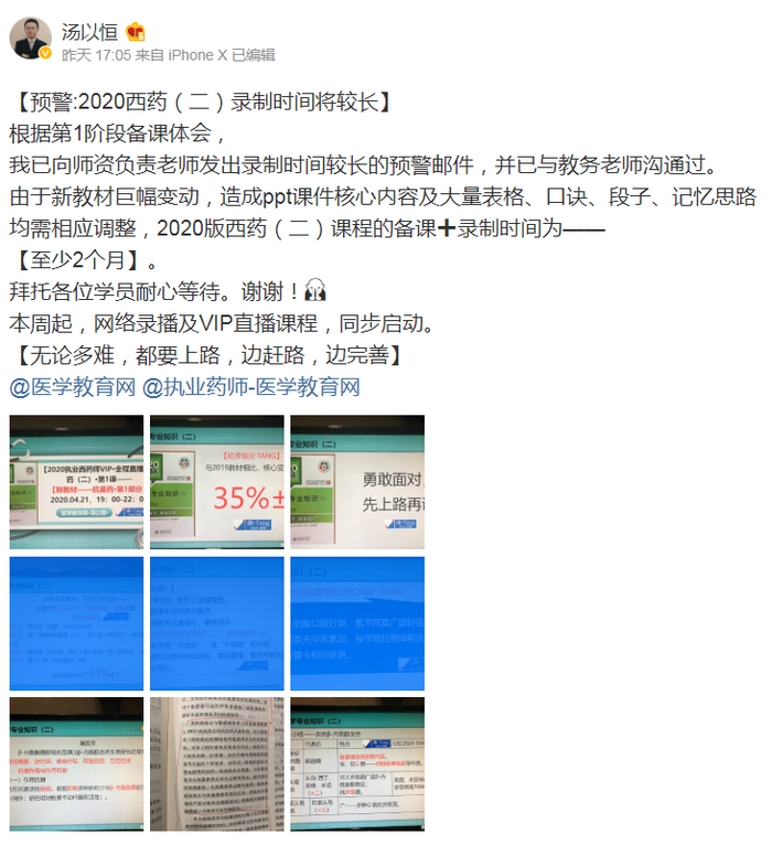 由于新教材巨幅變動,造成ppt課件核心內(nèi)容及大量表格、口訣、段子、記憶思路均需相應(yīng)調(diào)整,2020版西藥(二)課程的備課+錄制時間為——【至少2個月】。
