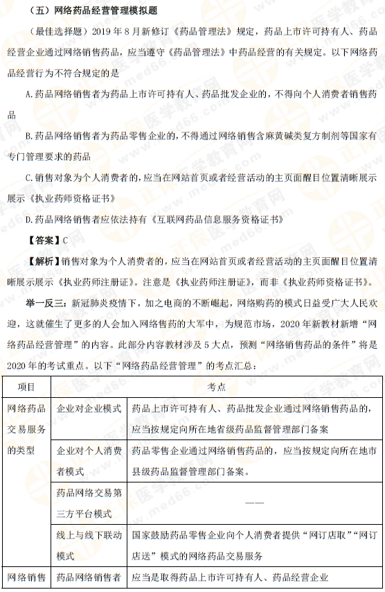 執(zhí)業(yè)藥師《法規(guī)》2020年新增考點模擬題+考點整理(二)