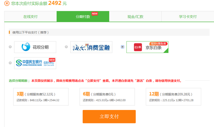 參與方式:在付款時選擇任意一種分期方式即可。購買VIP課程,前300名付款,更有618元京東購物卡等你來領(lǐng)!