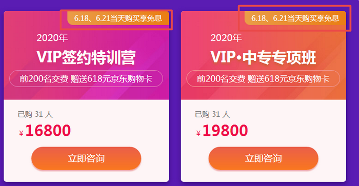 3、VIP課程6月18日、21日限時(shí)免息,前300名交費(fèi),更有618元購(gòu)物卡等你來(lái)領(lǐng)!