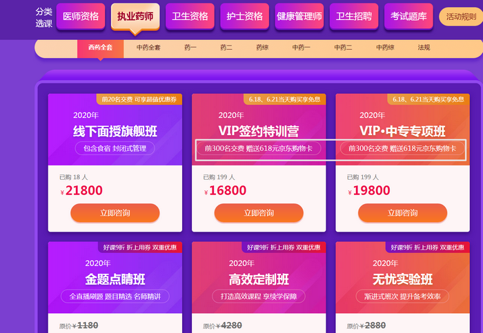 以上就是這次活動(dòng)的全部課程優(yōu)惠活動(dòng)啦!2020年執(zhí)業(yè)藥師考生們,你還在等什么?快來(lái)購(gòu)買吧!