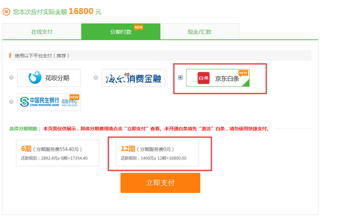 3、京東白條12期免息