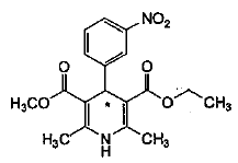 尼群地平 | 2,6-二甲基-4- (3-硝基苯基)-1,4-二氫-3,5-吡啶二甲酸甲乙酯 | 1,4-二氫吡啶環(huán) | 降壓藥 | |