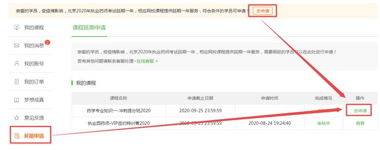 北京市執(zhí)業(yè)藥師輔導(dǎo)課程延期申請——流程講解