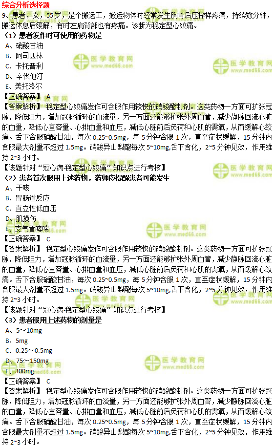 占比10-15分!2020年藥綜“心血管系統(tǒng)常見疾病”練習(xí)!