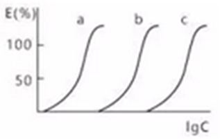 6.a、b、c三種藥物的受體親和力和內(nèi)在活性對量效曲線的影響如下圖,下列說法正確的是