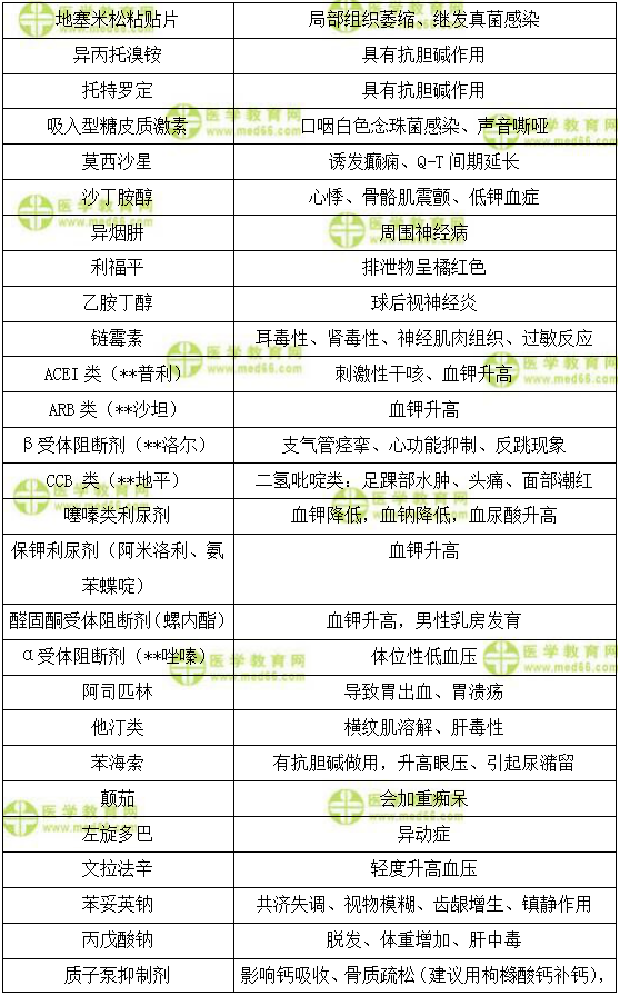 《藥學(xué)綜合知識(shí)與技能》不良反應(yīng)匯總(一)