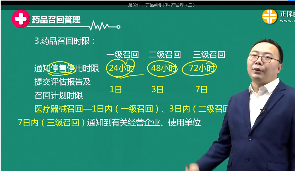 11.根據(jù)藥品安全隱患的嚴重程度,藥品召四分為三級。其中,一級召回的管理要求是