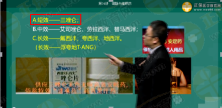 【解析】三唑侖是短效藥,艾司唑侖、勞拉西泮和替馬西泮是中效藥,氟西泮和夸西泮是長(zhǎng)效藥。