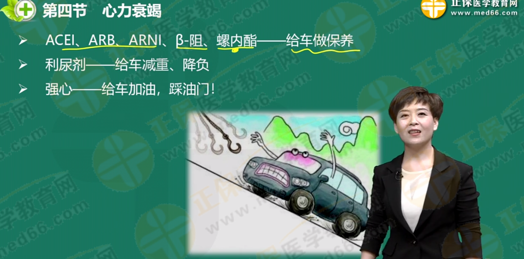 【解析】抑制RAAS(ACEI/ARB和螺內(nèi)酯)、抑制交感神經(jīng)系統(tǒng)的過度激活(β受體阻斷劑),即可抑制心肌纖維化和心肌重構(gòu),因此ACEI(或ARB)、β受體阻斷劑和醛固酮受體阻斷劑曾經(jīng)被稱為心力衰竭治療的“金三角”。