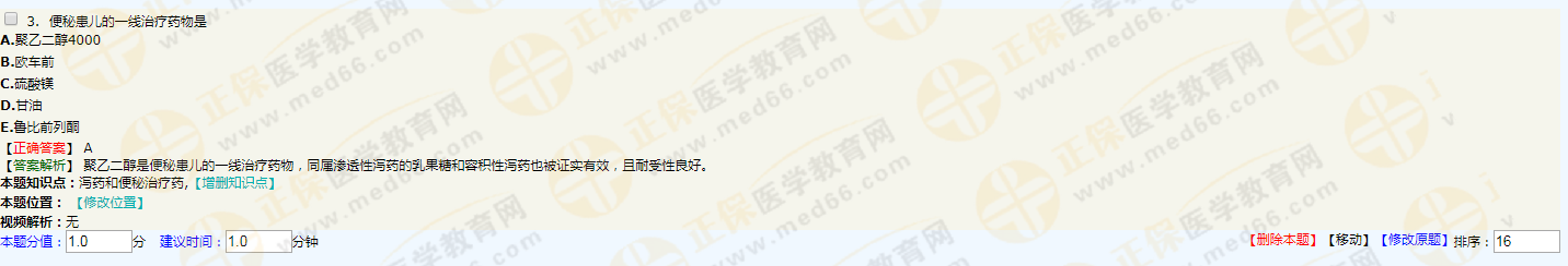 7/18.關(guān)于聚乙二醇4000治療便秘的說法,錯(cuò)誤的是
