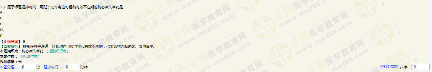 8/19.通過抑制鉀通道,延長(zhǎng)動(dòng)作電位時(shí)程的抗心律失常藥物是