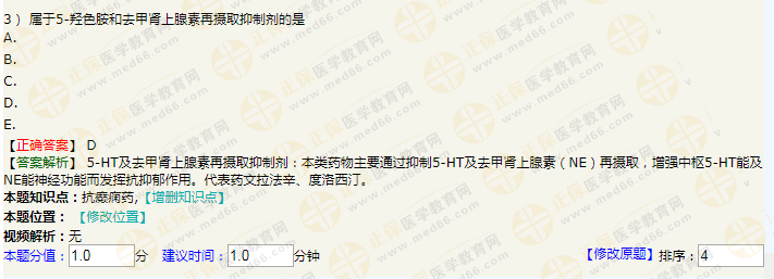 22/49.通過抑制5-HT和去甲腎上腺素(NA) 再攝取,增加突觸間隙5-HT和NA濃度從而增強(qiáng)中樞5-HT和NA能神經(jīng)功能而發(fā)揮抗抑郁作用的藥物是