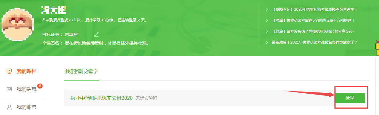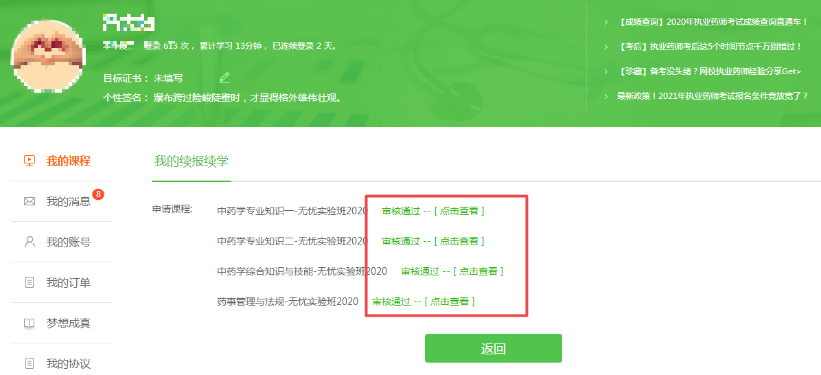 2020執(zhí)業(yè)藥師高效定制班/無(wú)憂實(shí)驗(yàn)班申請(qǐng)協(xié)議續(xù)學(xué)入口+流程