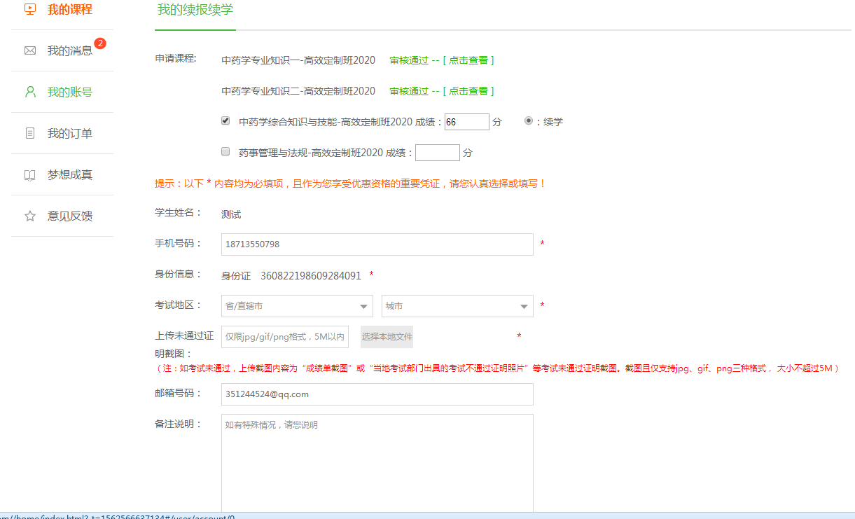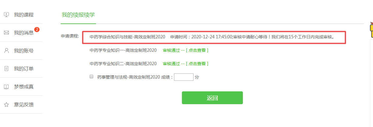 (4)申請(qǐng)完成后,等待客服審核填寫(xiě)信息真實(shí)性。審核通過(guò)后,即為大家開(kāi)通續(xù)學(xué)課程。