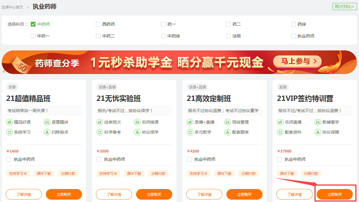 【免息】執(zhí)業(yè)藥師VIP簽約特訓營班次。