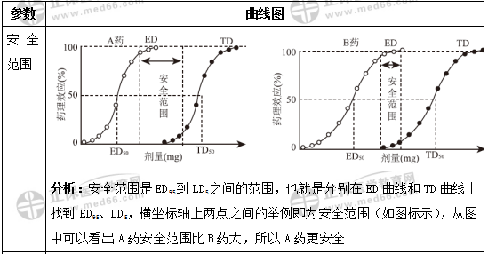 安全范圍是ED95到LD5之間的范圍,也就是分別在ED曲線(xiàn)和TD曲線(xiàn)上找到ED95、LD5,橫坐標(biāo)軸上兩點(diǎn)之間的舉例即為安全范圍。