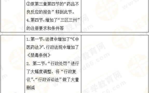 縱觀教材的變化,我們不難看出,2021年版教材更加強調(diào)規(guī)范藥物市場,針對中藥相關(guān)的規(guī)定有大面積新增,與新冠的大趨勢有很大聯(lián)系,充分說明《法規(guī)》的相關(guān)內(nèi)容是與時俱進的。在復習的過程,有關(guān)新增的內(nèi)容肯定是關(guān)注的重點,當然一些老考點依然是主打,這就要求我們在吸收新內(nèi)容的同時,需要加強老考點的識記。因為以上列舉的變動是比較寬泛的,細節(jié)的變動比較多,相當于變相加大了考試難度,我們需要引起足夠的重視。另外,新教材也對一些往年比較難的考點進行了適當減負,比如假劣藥量刑等,考慮是編書人想換一下往日的思路,與其學員都學不明白,不如換點其他的可考點。