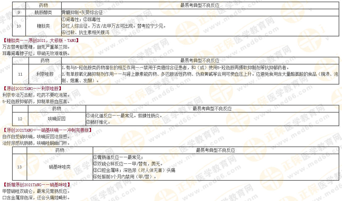 湯以恒:2021《藥二》抗菌藥大總結(jié)——典型不良反應(yīng)(25條)