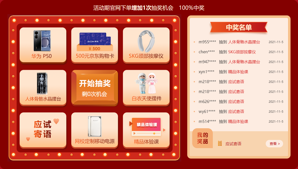 (2)5折驚喜券:可用于所有參與活動(dòng)折扣的課程,不可與其他優(yōu)惠券疊加使用。