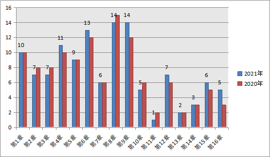 2020~2021年《藥學(xué)專業(yè)知識(shí)二》考試情況分析,各章節(jié)分值對(duì)比如下: