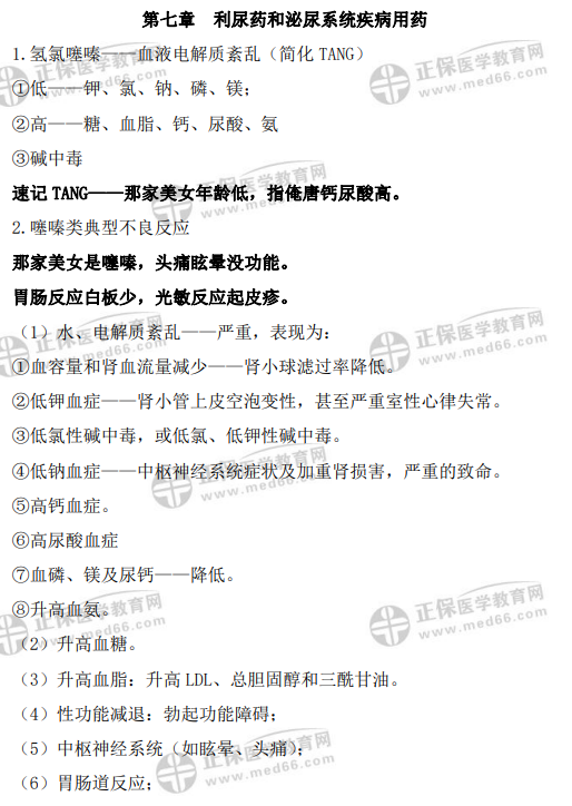 《藥二》第七章 利尿藥和泌尿系統(tǒng)疾病用藥 考試重點記憶口訣