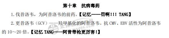 湯以恒記憶口訣!《藥二》第十章 抗病毒藥 重點(diǎn)記憶口訣!