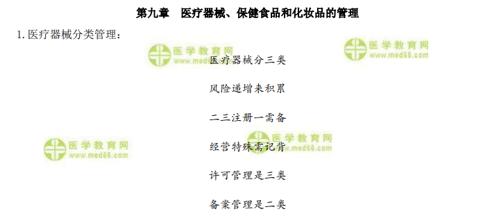 2022年《法規(guī)》第九章 醫(yī)療器械、保健食品和化妝品的管理 重點內容記憶口訣!